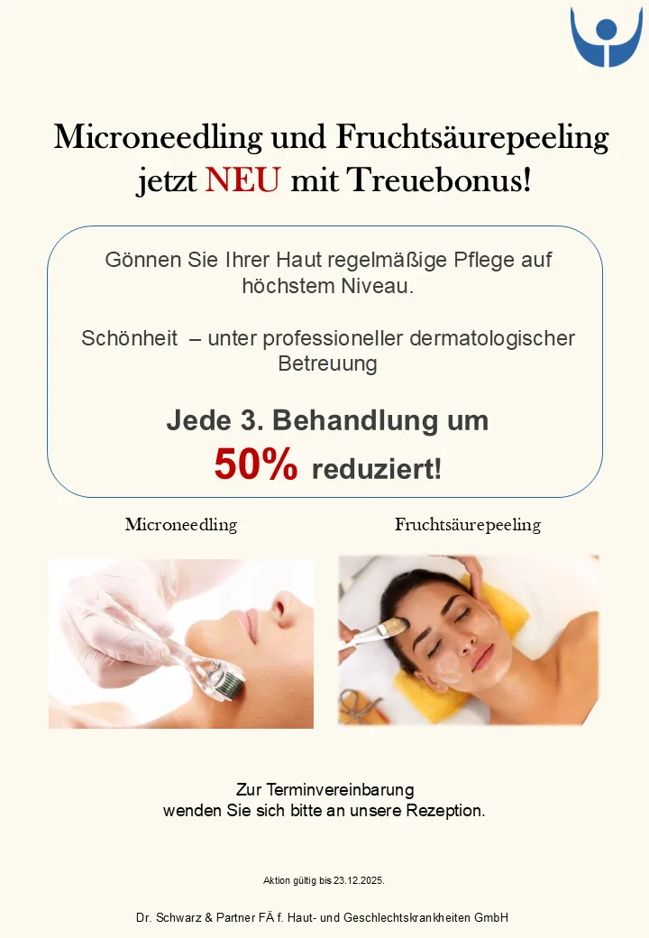 20 Okt. Aktion von Microneedling und Fruchtsäurepeeling Posted by Dr. Sabine Schwarz In Neues 0 comment Microneedling und Fruchtsäurepeeling! Jede 3. Behandlung um 50% reduziert